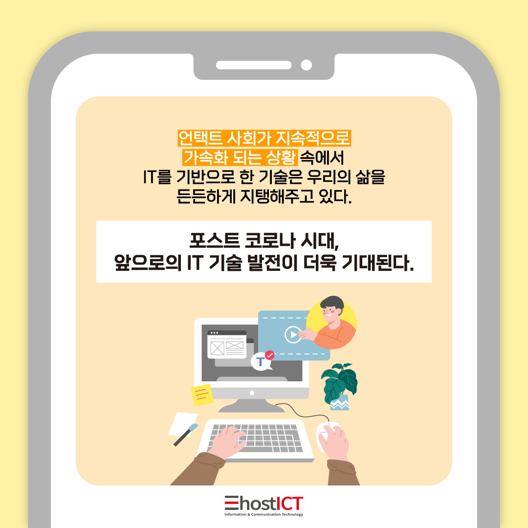 코로나19의 확산으로 비대면 사회가 지속되는 상황에서 IT를 기반으로 한 언택트 기술은 우리의 삶을 든든하게 지탱해주고 있습니다. 추후 코로나가 종식된다 하더라도, 이미 우리 사회 깊이 뿌리 뻗은 언택트 사회는 하나의 문화로 자리 잡게 될 것 같은데요. 이에 맞춰 언택트 시대의 IT 기술도 나날이 발전할 것이라고 기대해봅니다.