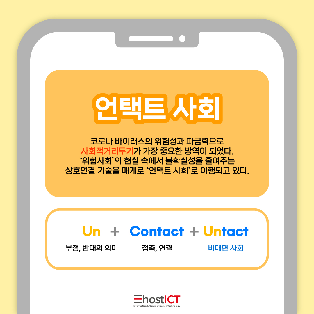 언택트 사회란 Un과 Contact의 합성어로 직역하면 '접촉을 하지 않는'이라는 뜻으로 즉, '비대면'을 말합니다.