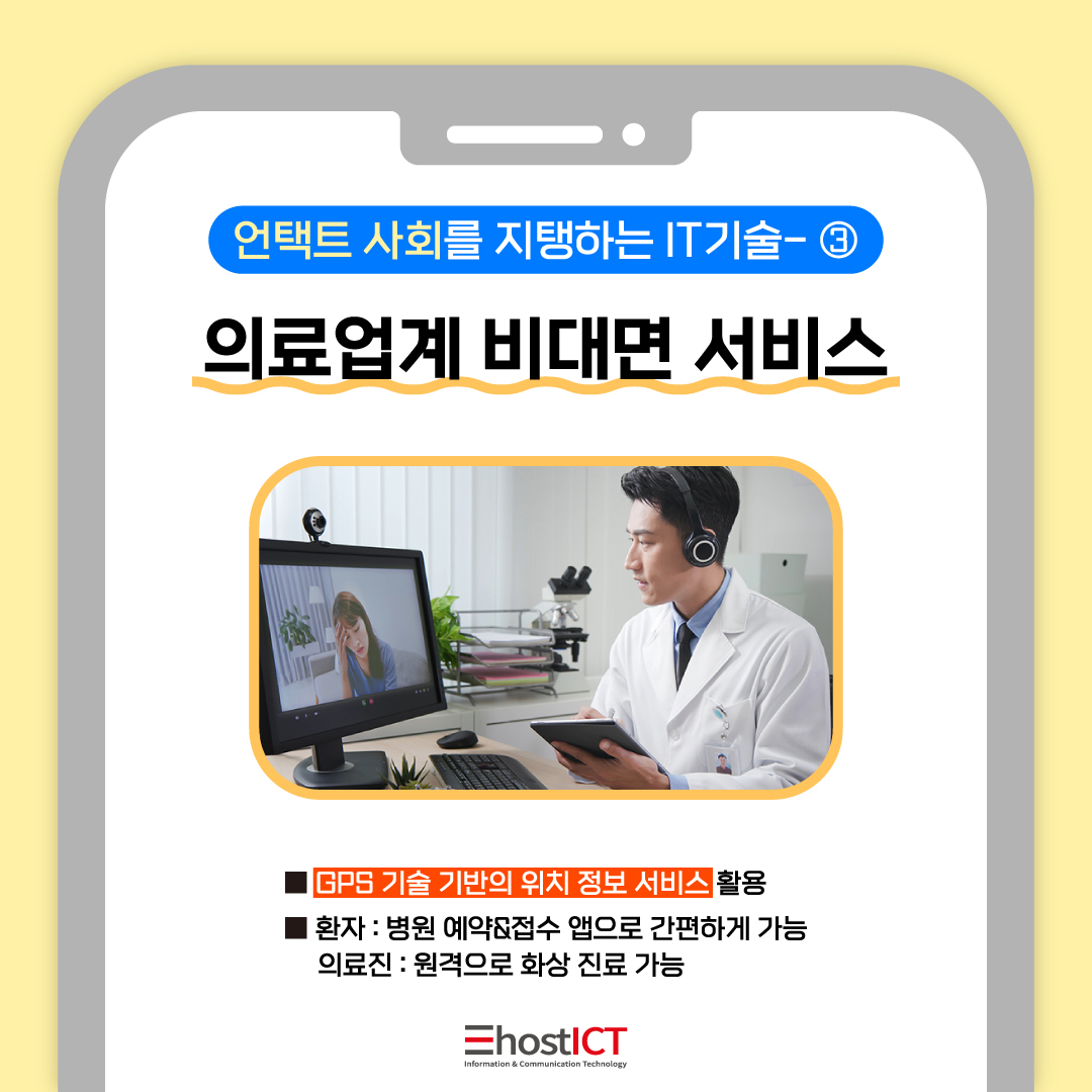 언택트 사회를 지탱하는 IT기술 세 번째는 의료업계 비대면 서비스입니다.