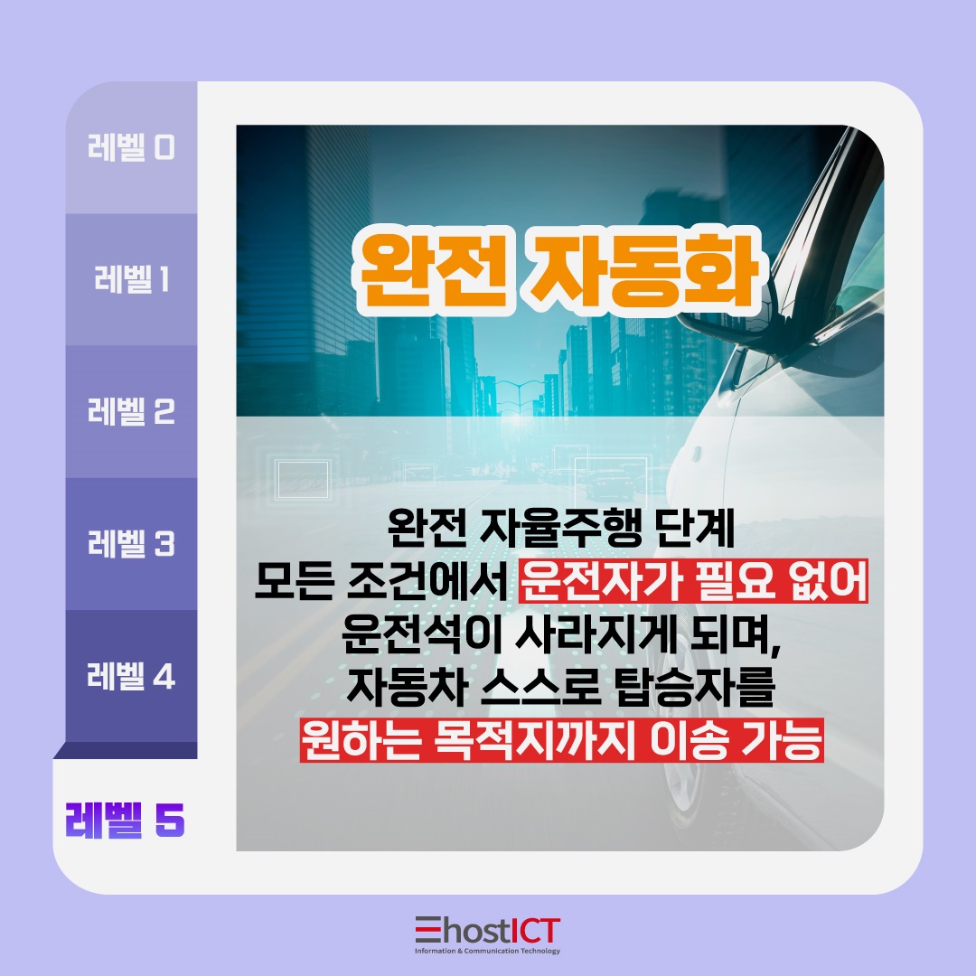 마지막, 레벨 5입니다. 레벨 5는 완전 자동화(Full Automaion) 단계로 완전 자율주행 단계를 말합니다.