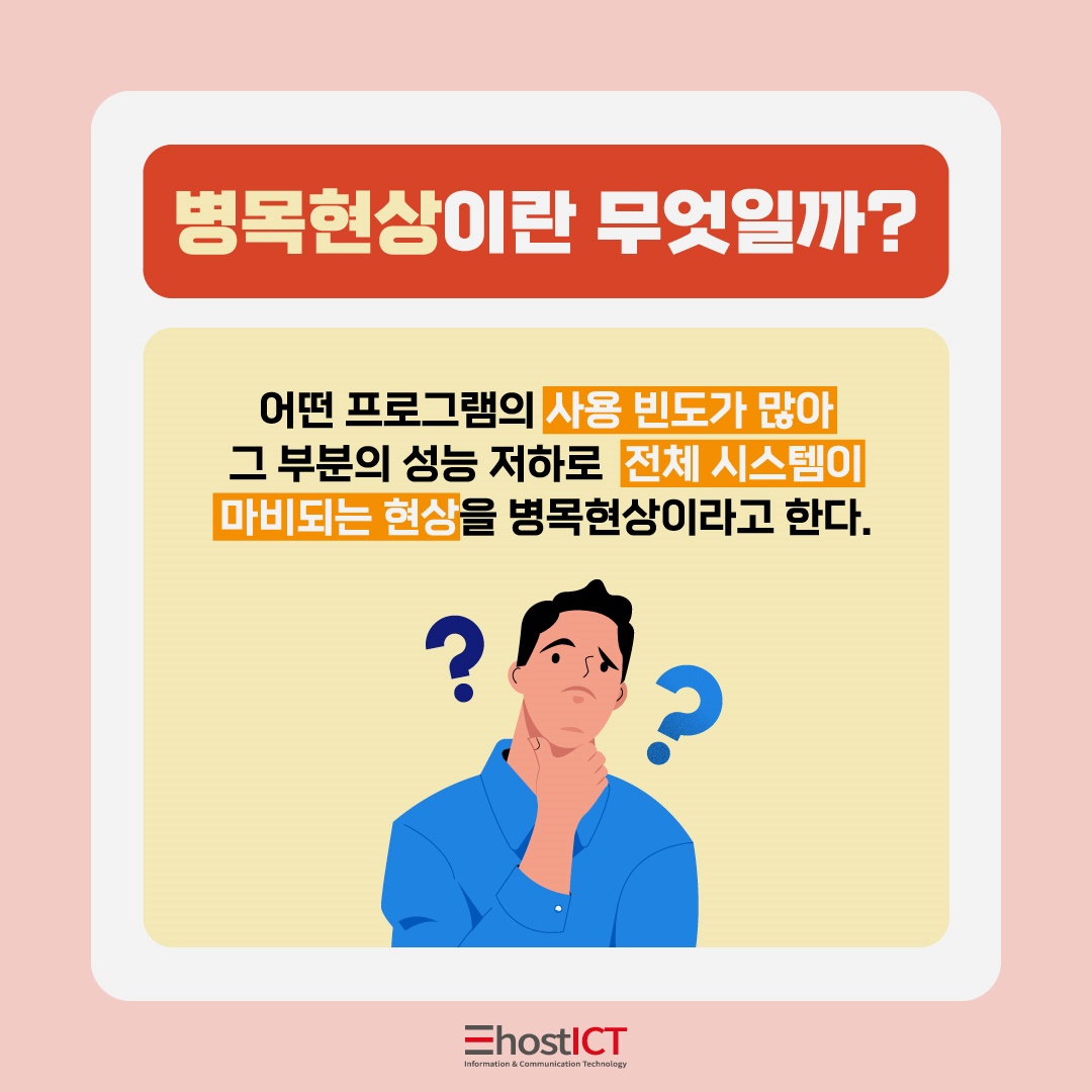 병목현상이란 어떤 프로그램의 사용 빈도가 많아 과부화가 되어, 성능 저하로 이어져 전체 시스템이 현저하게 느려지거나 마비되는 현상을 뜻합니다. 보통 원인으로는 부품 간에 성능이 심하게 대조되거나, 출시 연도가 많이 차이나는 경우 등 시스템이 조화를 이루지 못하여 프로그램 최적화가 되지 않아서인 경우가 대부분인데요.