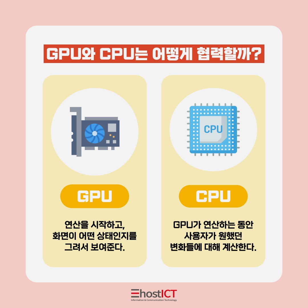 GPU (그래픽카드)는 연산을 시작하며 화면에서 상태를 보여주는 역할을 하며, CPU는 GPU가 연산을 하는 동안 사용자가 원한 변화들에 대해 계산을 하게 되는데요.