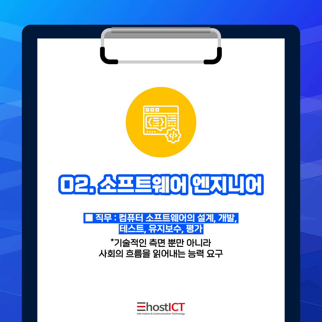 개발자가 하는 직무로는 웹디자인부터 정보 설계 데이터베이스 관리, 프로그래밍이나 코딩까지 너무나 다양하고 여러 가지로 세분화되어 있습니다. 업무의 영역이 매우 넓기 때문에, 요구되는 역량과 지식, 본인의 강점을 참고해야 할 것입니다.