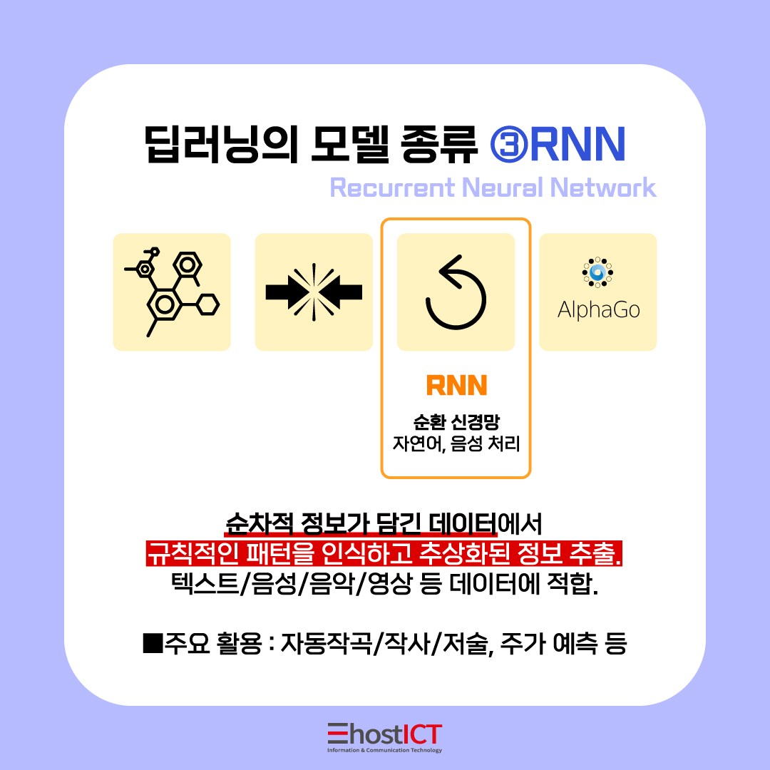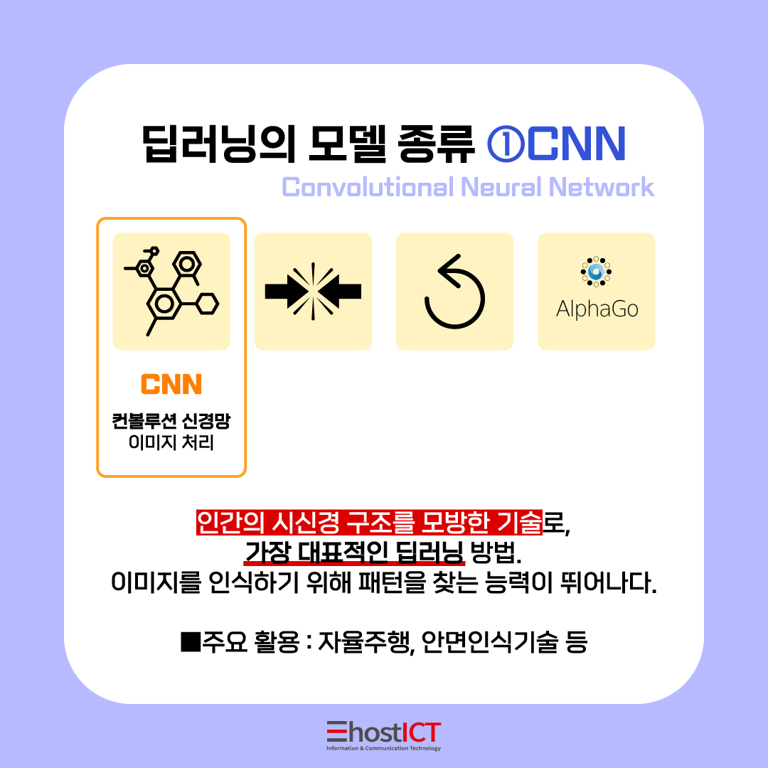 그렇다면 딥러닝 기술의 모델 종류로는 어떤 게 있을까요?