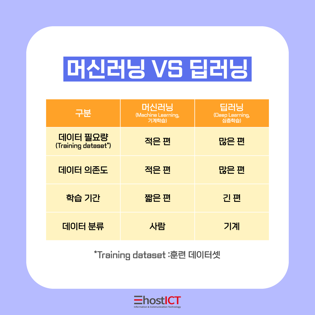 그렇다면 구체적으로 머신러닝과 딥러닝에는 어떤 차이가 있을까요?