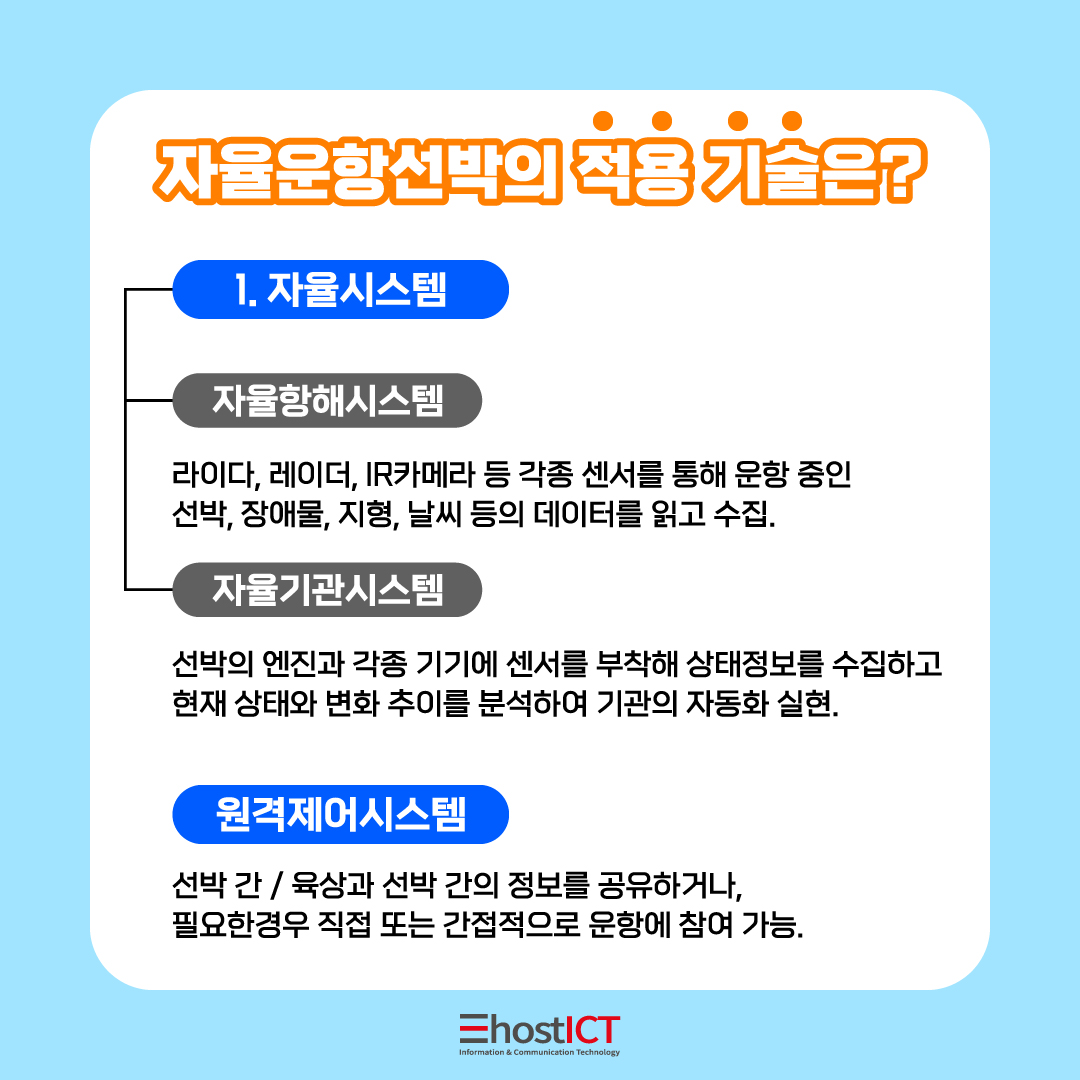 그렇다면 자율운항 선박의 적용 기술은 어떤 것이 있을까요?
