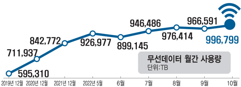 올해 무선 데이터 '月사용량 100만TB' 눈앞