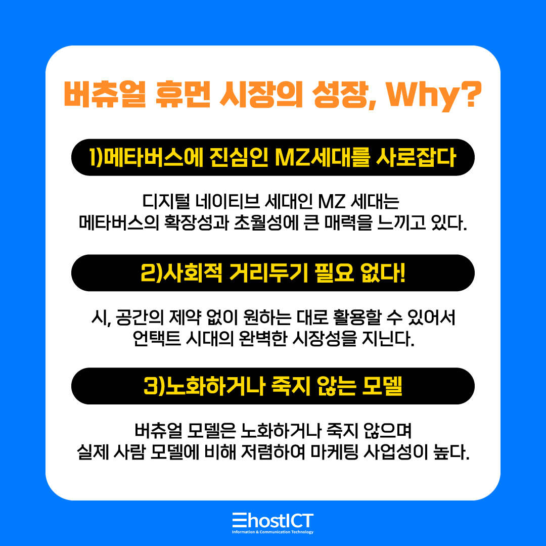 그렇다면 3D그래픽과 인공지능 기술을 활용한 버츄얼 휴먼 시장이 성장하는 이유는 무엇일까요?