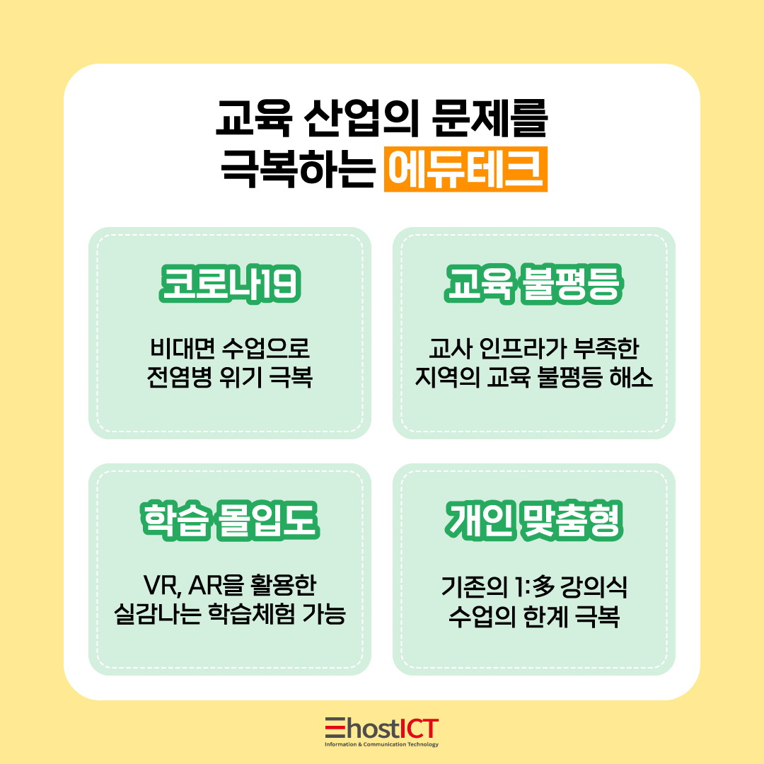 교육 산업에 ICT 기술이 결합된 ‘에듀테크’는 현 교육산업의 문제점들을 극복하는 4가지 특장점이 있어 더욱 주목 받고 있는데요.