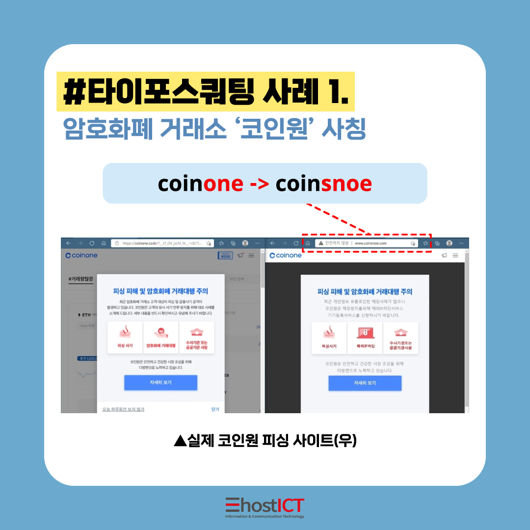 '타이포스쿼팅' 사례인 암호화폐거래소 ‘코인원’ 사칭 사건에 대해 를 알아볼까요?