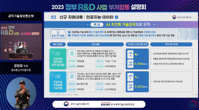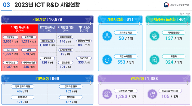 과학기술정보통신부는 이달 3일부터 5일까지 서울 서초구 가톨릭대에서 진행하는 '2023년도 국가연구개발(R&D)사업 부처합동설명회'에서 올해 디지털 연구개발 사업에 대한 추진 계획을 발표했다.