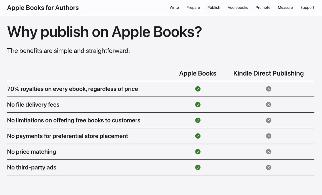 애플은 특히 자체 제작 시스템을 이용해 오디오북을 만들면 인세를 70%까지 제공한다며 작가 모집에 공격적으로 나섰다. 아마존에는 없는 혜택이다.