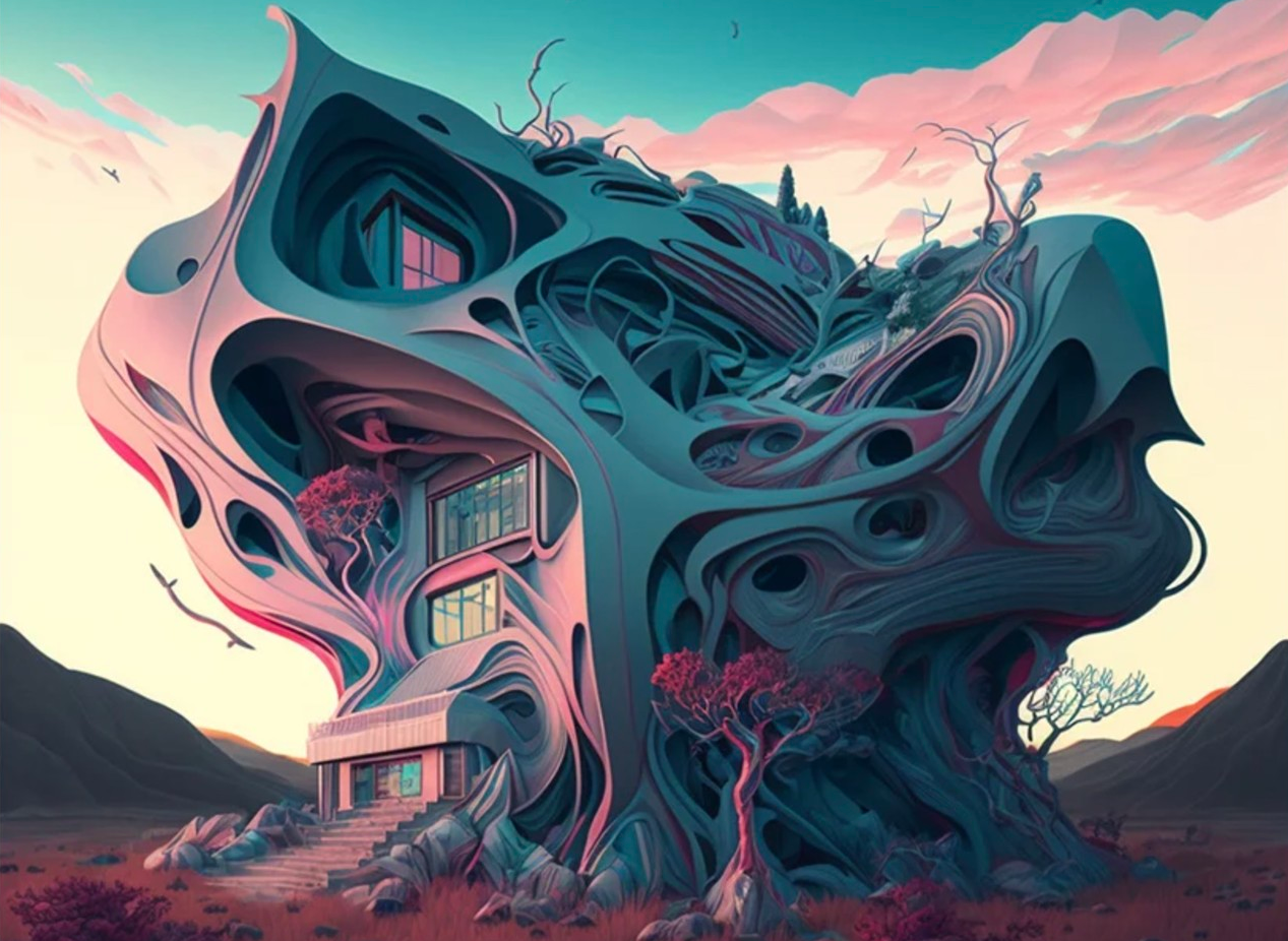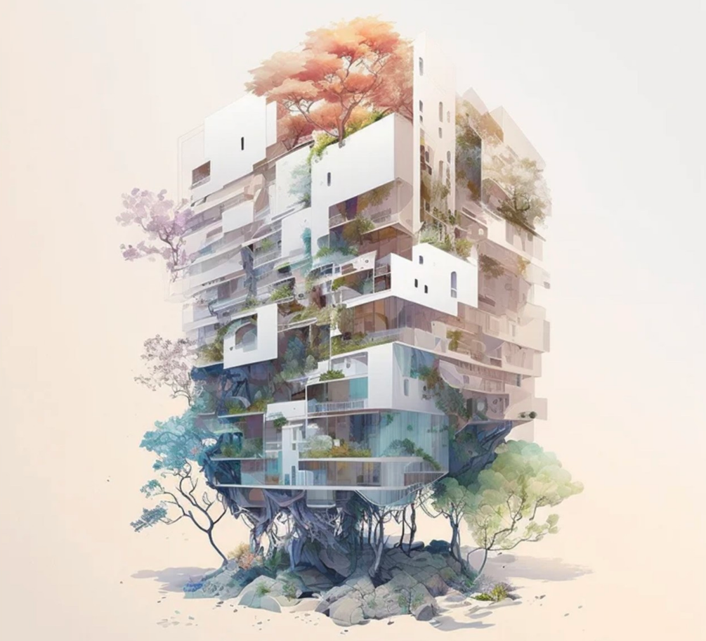 AI 이미지 생성기인 미드저니를 이용해 만든 건축 디자인이 눈길을 끌고 있다.