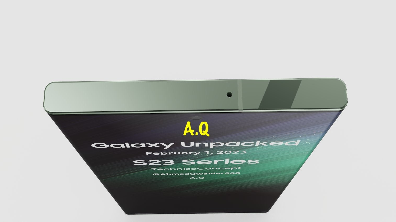 렌더링 속 갤럭시S23 울트라는 측면이 휘어진 엣지 디스플레이가 아닌 전체적으로 더 평평한 디스플레이가 채택됐다.