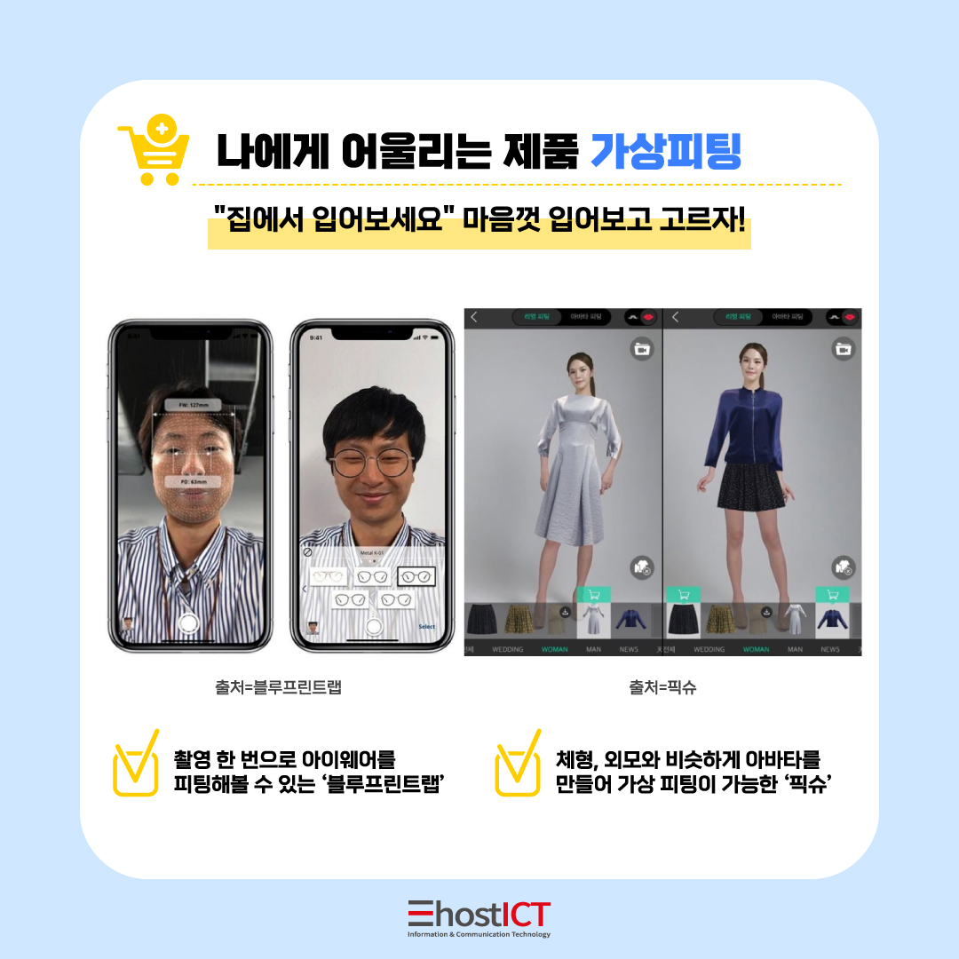 비대면 온라인 쇼핑은 편리하지만 막상 제품을 받아보면 마음에 들지 않거나 얼굴형, 체형에 어울리지 않아 불만족스러운 경우가 종종 생기게 되는데요. 나에게 어울리는 제품을 가상피팅 해볼 수 있는 플랫폼이 있으니 걱정을 조금 덜어놓아도 될 것 같습니다.