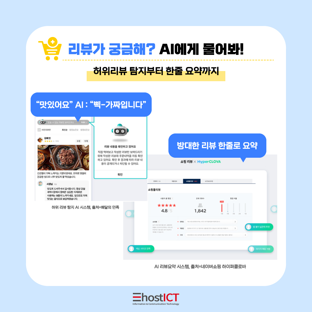 수만 개의 리뷰를 모두 읽는 것은 시간 소모가 많이 되는 일입니다. 이러한 소비자의 불편함을 해소시켜주기 위해 네이버에서는 대규모 AI 하이퍼클로바를 기반으로 스마트 스토어 내 수많은 상품 리뷰를 분석하여 요약된 양질의 정보를 제공하고 있는데요. 다수의 사용자가 언급한 핵심적인 내용을 중심으로 요약이 이루어지며 자연스러운 한 줄의 요약문으로 정리되어 있어 수많은 리뷰를 직접 읽고 비교 하지 않아도 되어 더욱 편리한 쇼핑을 도와주고 있습니다.