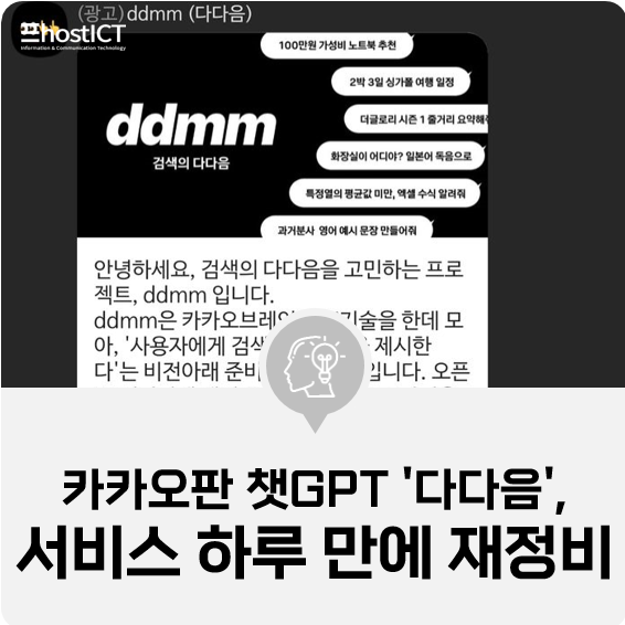 카카오판 챗GPT '다다음', 서비스 하루 만에 '재정비'
