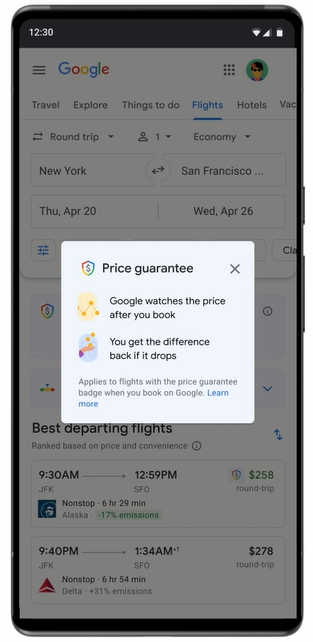 구글은 공식 블로그를 통해 "출발할 때까지 매일 가격을 모니터링하고 가격이 떨어지면 구글 페이를 통해 차액을 돌려준다"라고 설명했다.