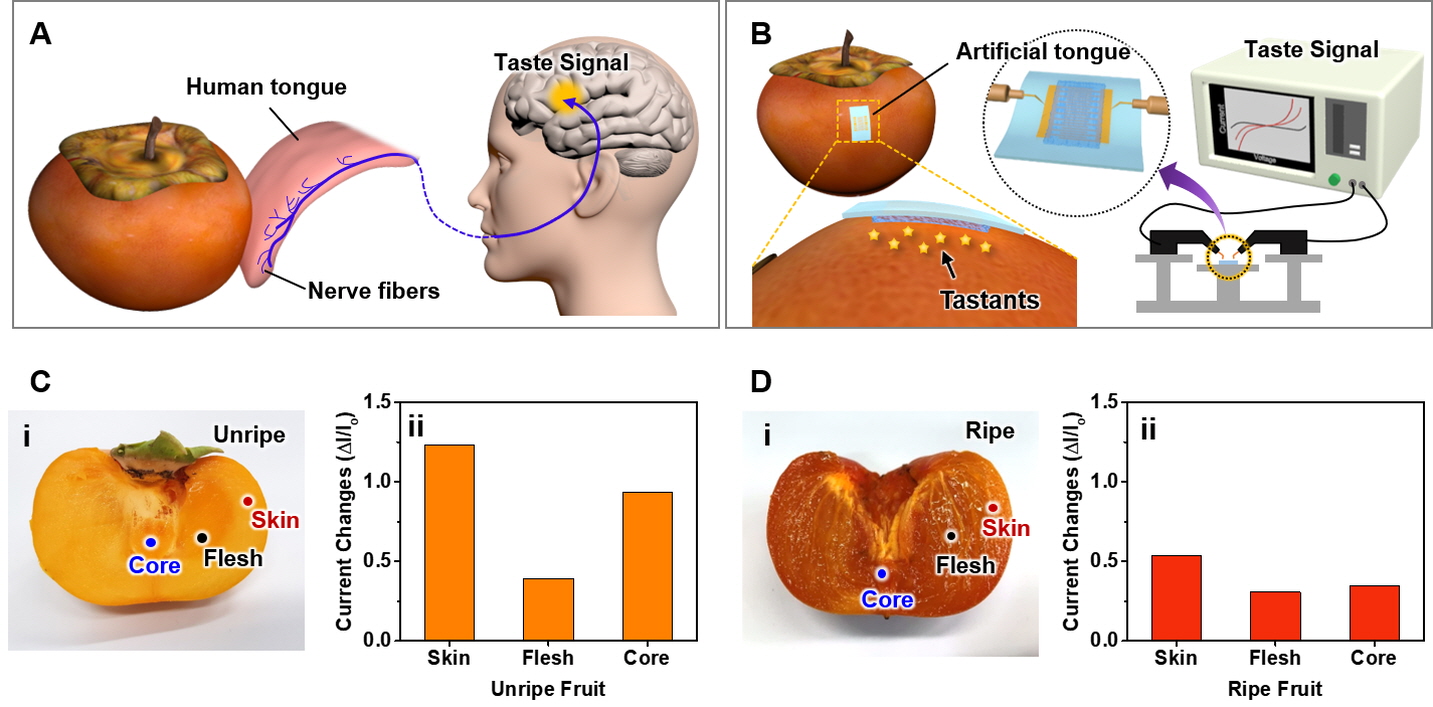 덜 익은 과일 혹은 드라이한 와인 등을 먹으면 입안이 텁텁해지는 떫은맛을 느낄 수 있습니다. 사실 여기서 '떫은맛'은 미각이 아닌 입속 점막 같은 피부 조직이 자극을 받아 느끼는 피부 감각인데요. 이처럼 떫은맛은 '감각'의 영역에 더 가까운 맛이기 때문에 일반적인 '맛'을 감지하는 전자혀와는 다른 원리로 작동하는 새로운 전자혀가 필요합니다. 그래서 UNIST 고현협 교수 연구팀에서는 미세한 구멍이 많은 고분자 젤을 이용하여 떫은맛을 감지하는 전자혀를 개발했습니다.