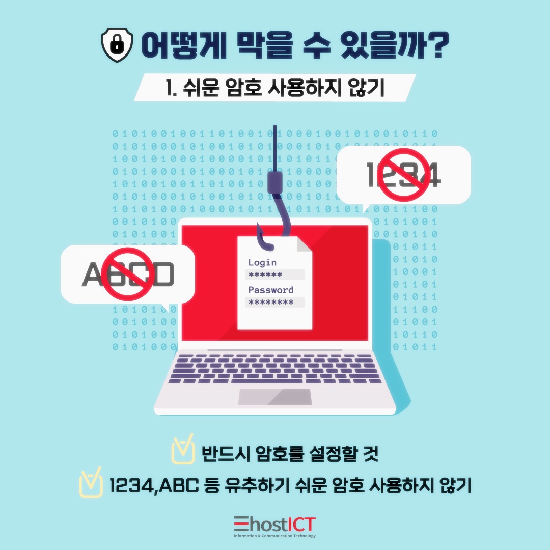 첫째로, 쉬운 암호를 사용하지 않는 것입니다.