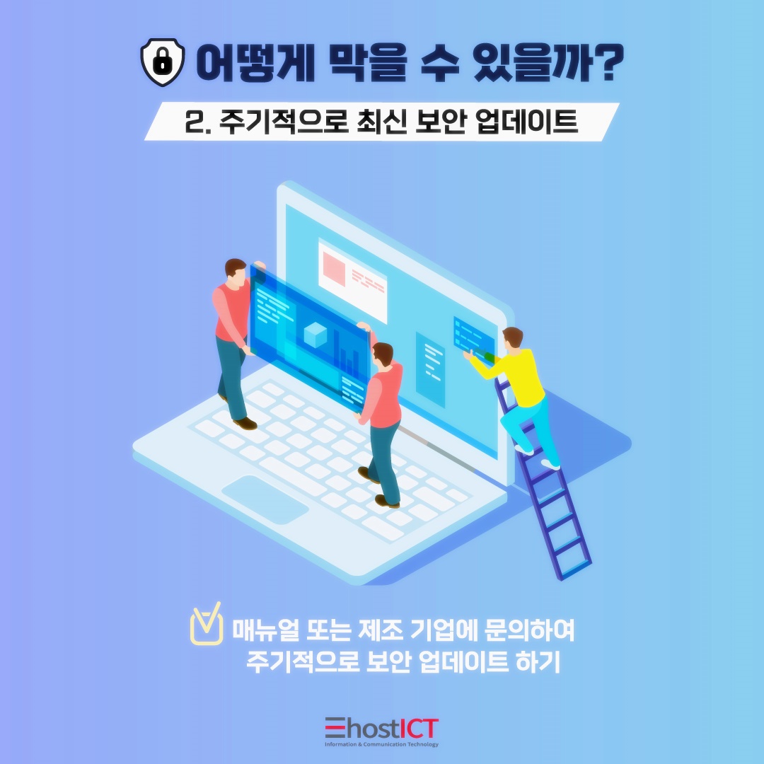 둘째, 주기적으로 최신 보안 업데이트를 하는 것입니다.