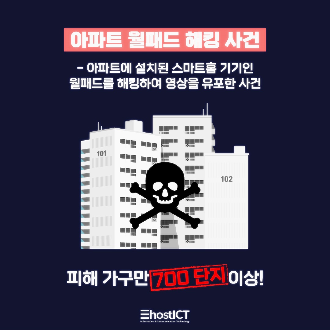 그럼에도, 아파트 홈네트워크를 통한 해킹 범죄는 꾸준히 지속되어 왔습니다. 비교적 초보적인 수준의 해킹 기술로도 스마트홈 시스템 보안 망이 뚫릴 수 있기 때문인데요. 잠시 보안에 허술한 틈을 타서, 혹은 다른 보안 상의 취약점으로 사생활이 유출될 수 있다는 점은 여전히 우려할 만한 부분입니다.