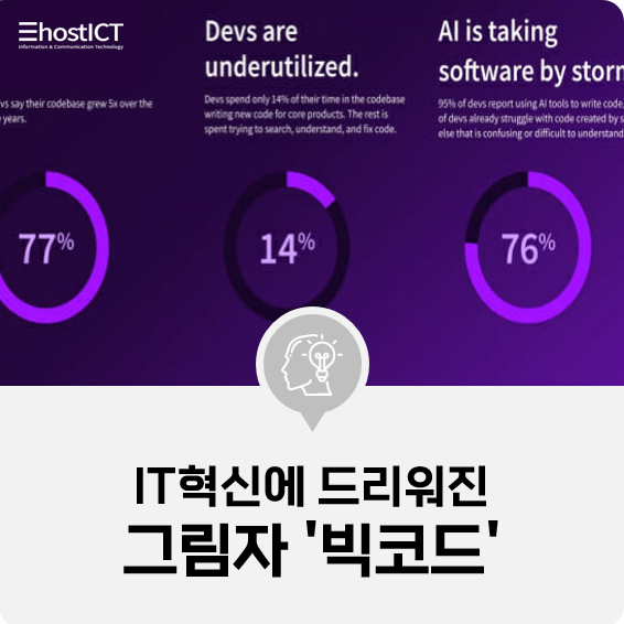 응답자 중 72%는 빅코드와 생산AI가 만들어내는 대규모 소스코드로 인해 기술 부채 등이 기업의 혁신과 발전에 실제 위협을 가할 수 있을 것이라고 답했다.