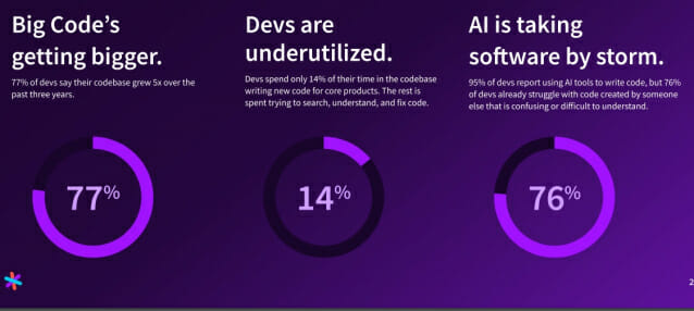 퀸 슬랙 소스그래프의 설립장 겸 최고경영자는 “빅 코드는 지난 10년 동안 더욱 악화돼 왔다”며 “조사결과 코드의 규모는 더욱 커져갔으며 AI는 이를 더욱 악화시킬 우려가 크다”고 말했다.