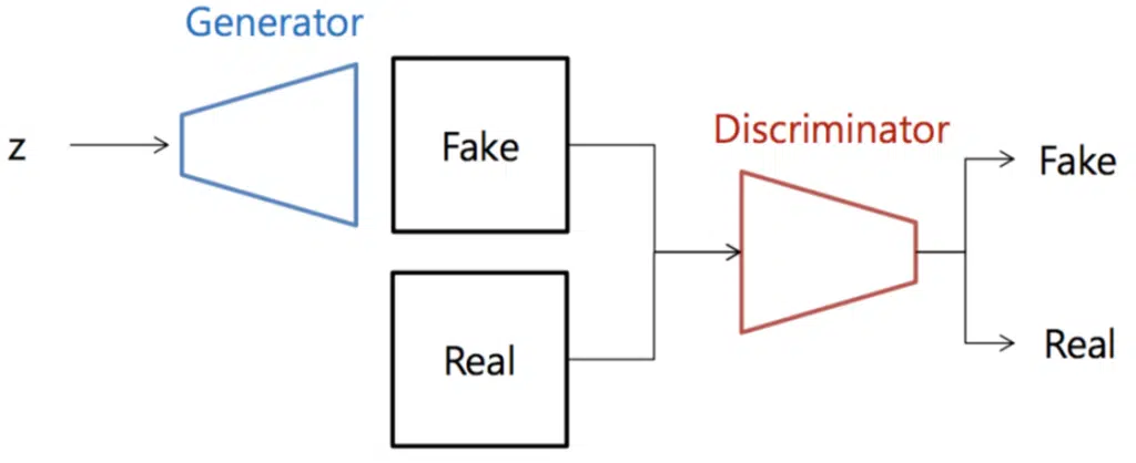 GAN에는 생성자(Generator)와 판별자(Discriminator) 두 개의 모델이 있습니다. 생성자는 진짜 데이터와 같은 가짜 데이터를 만들어내는 역할을 하고 판별자는 입력된 데이터가 진짜 데이터인지 가짜 데이터인지 판별하는 역할을 합니다. 즉, 생성자의 목적은 판별자가 가짜를 진짜라고 생각하도록 하는 것이며, 판별자의 목적은 진짜와 가짜를 정확하게 구분하려고 하는 것이죠. 이렇듯 목적이 다른 적대적인 요소를 통해 서로 경쟁하며 학습하는 방식으로 이루어져 적대적 생성 신경망이라는 이름이 붙게 되었습니다.