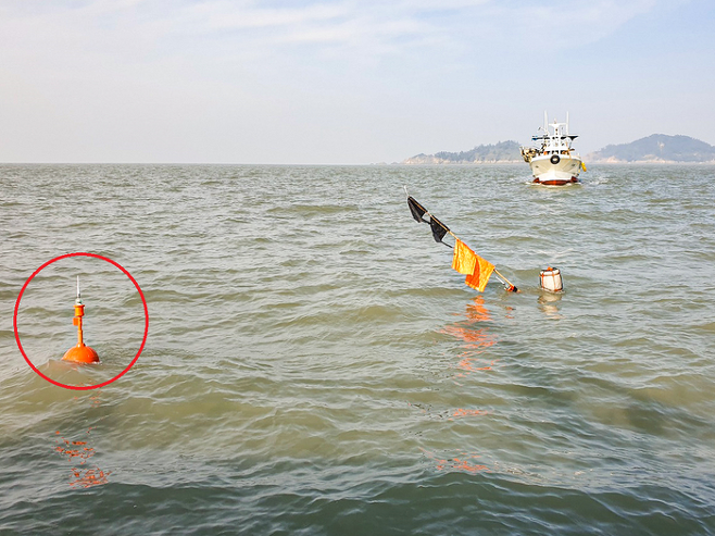 현재 한국 연근해에 사용되는 연간 어구 수량은 약 13만 1000t으로 추정되는데요 이 가운데 4만 4000t은 바다에 버려진다고 합니다. 어마어마한 양의 유실 어구를 감소시키고자 개발된 것이 바로 이 어구 자동식별 모니터링 시스템입니다. 이 시스템은 해상 사물인터넷(IoT) 기술을 바탕으로 어구마다 위치 정보를 송신하는 '전자 부이'를 붙이는 것이 핵심입니다. 여기서 부이란 수면에 띄우는 표식을 의미하는데요. 이 표식에 전자식 꼬리표를 부착하는 것입니다. 전자 부이는 위치와 함께 어구의 소유자와 종류 등 어구에 관한 정보들이 담겨있으며 무선 통신을 통해 주변 어민과 관리선, 육상 통합 관제센터가 실시간 확인할 수 있습니다.