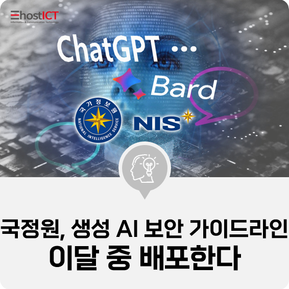 국가정보원(이하, 국정원)이 이달 중 국가 공공기관·지방자치단체를 대상으로 한 ‘챗GPT' '바드(Bard)' 등 생성 인공지능(Generative AI) 기술 활용 과정에서 발생할 수 있는 보안 문제를 사전 예방하기 위해 활용 보안 가이드 라인을 배포할 예정이다.