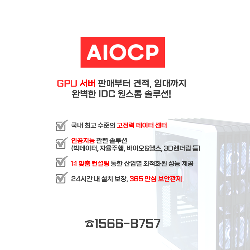 | [서버전문브랜드 AIOCP] S대학교 / AI 기반 자연어처리 연구 목적의 서버 납품 사례 (0) | 2023.05.04 |