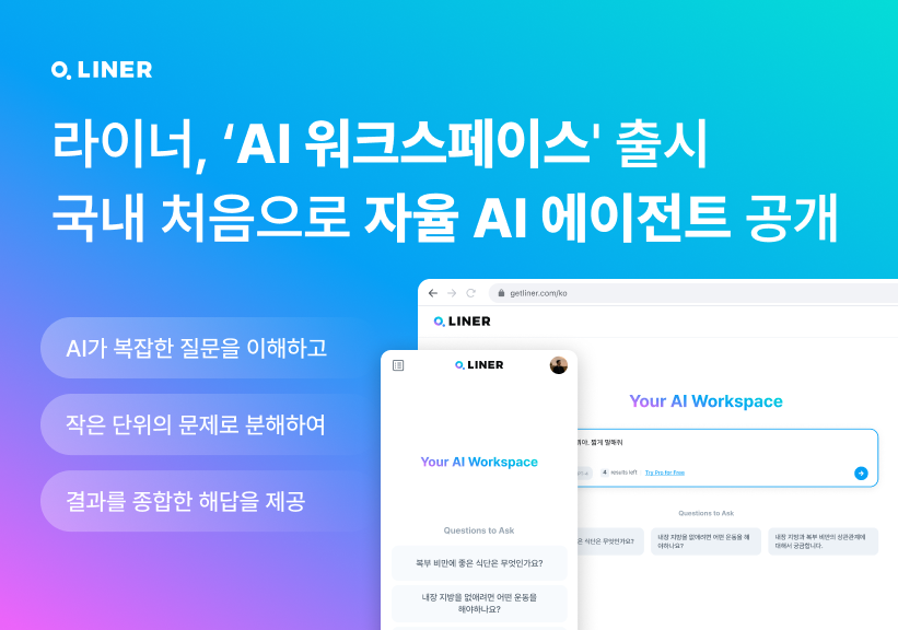 인공지능(AI) 검색 전문 라이너(대표 김진우)가 국내 첫 자율 AI 에이전트 서비스인 ‘AI 워크스페이스’를 출시했다고 17일 밝혔다.