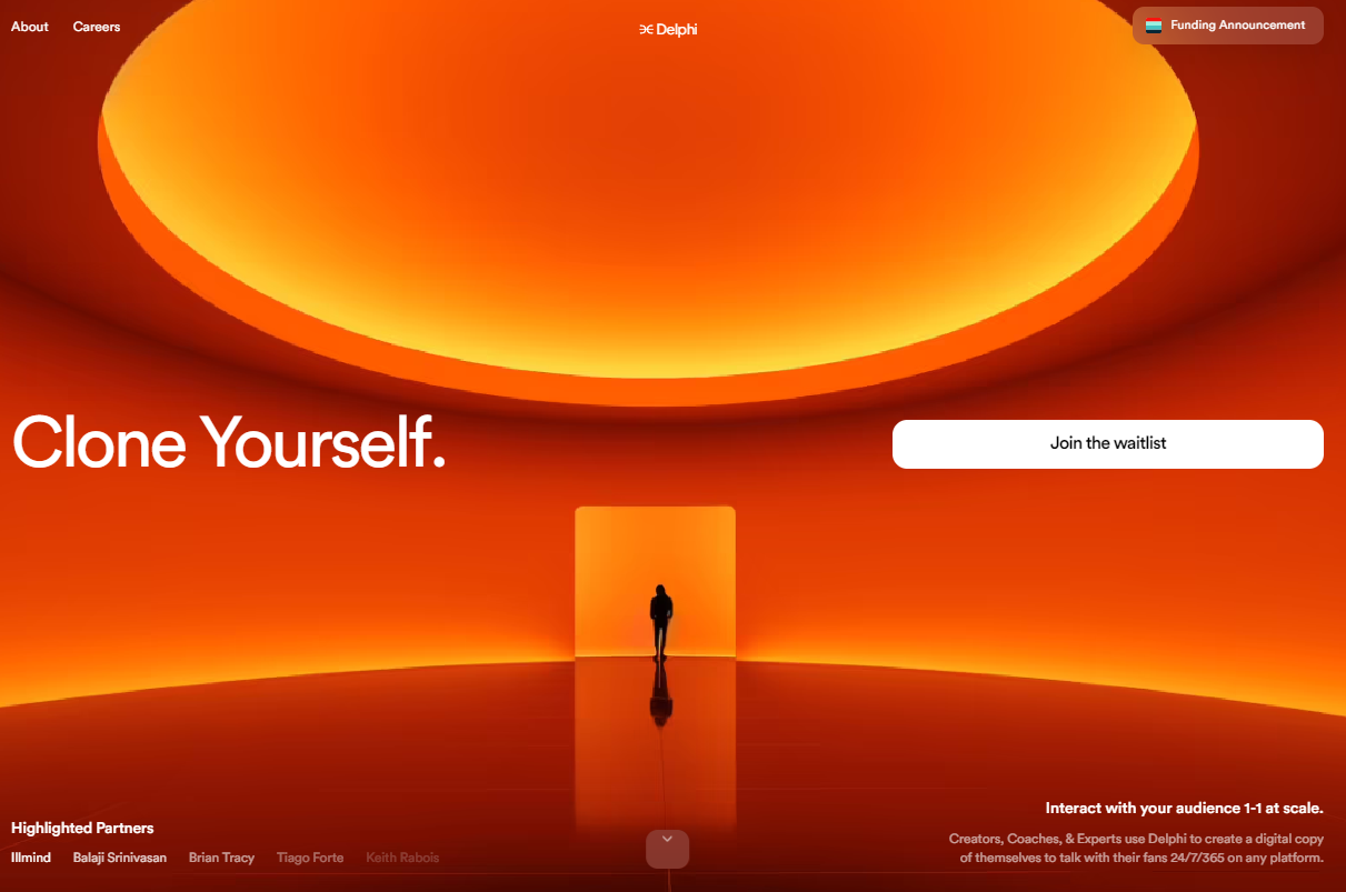 벤처비트는 6일(현지시간) 스타트업 델파이(Delphi)가 270만달러(약 36억원)의 펀딩 유치와 함께 AI 디지털 복제 서비스를 공개했다고 전했다. 유명 VC인 파운더스 펀드가 투자를 주도했다.