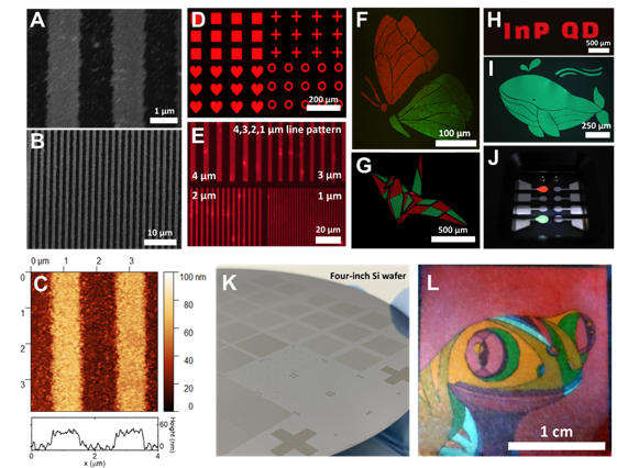 ■ 한국과학기술원(KAIST)은 조힘찬 신소재공학과 교수 연구팀이 유독 물질을 뺀 초고해상도 양자점 LED(QLED) 디스플레이를 제작하는 기술을 개발해 국제 학술지 'ACS 에너지 레터스'에 25일 게재했다고 26일 밝혔다. 양자점은 디스플레이 패널에 쓰이는 차세대 발광소재다. 카드뮴이나 납 같은 유독성 물질을 포함하고 있지 않는 친환경 인듐 포스파이드(InP) 양자점이 주목받는다. 연구팀은 InP 양자점의 발광 효율을 획기적으로 높일 수 있는 '양자점 표면 치료법'을 개발했다. InP 양자점의 표면을 개질할 수 있는 맞춤형 후처리 공정을 만들어 높은 발광 효율을 가지는 1마이크로미터(μm)급 초미세 양자점 패턴을 구현하는 데 성공했다. 이를 통해 수십 배 작은 패턴으로도 증강현실(AR) 및 가상현실(VR) 기기에 InP 양자점을 적용할 수 있는 가능성을 높였다.