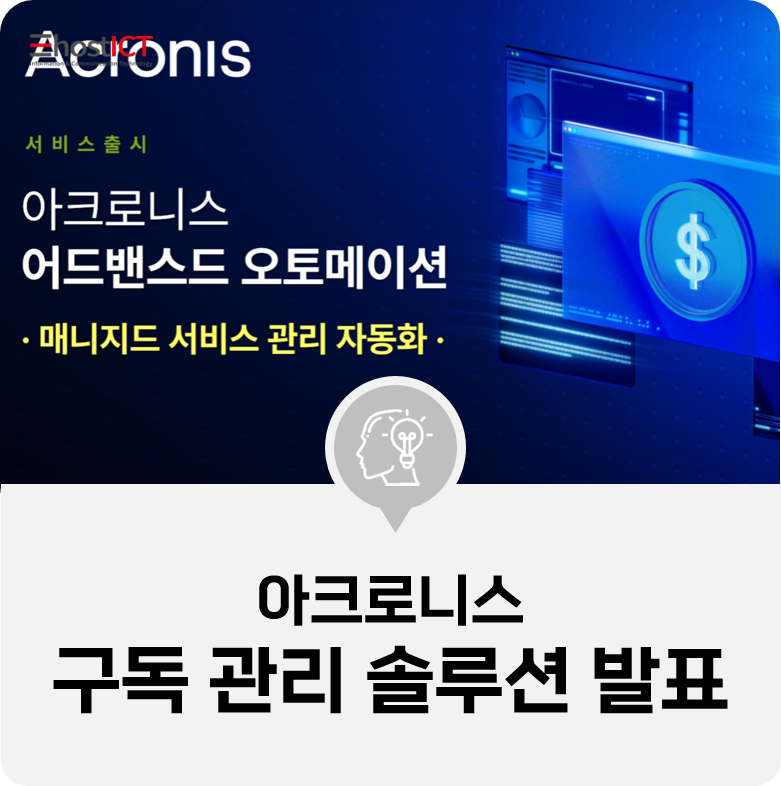 [아이티데일리] 사이버 보호 기업 아크로니스(한국지사장 고목동)는 MSP(매니지스 서비스 제공사)가 청구 및 계약 관리 등의 클라우드 중심 구독 기반 서비스 관리를 간소화할 수 있도록 지원하는 ‘아크로니스 어드밴스드 오토메이션(Acronis Advanced Automation)’을 4일 발표했다.