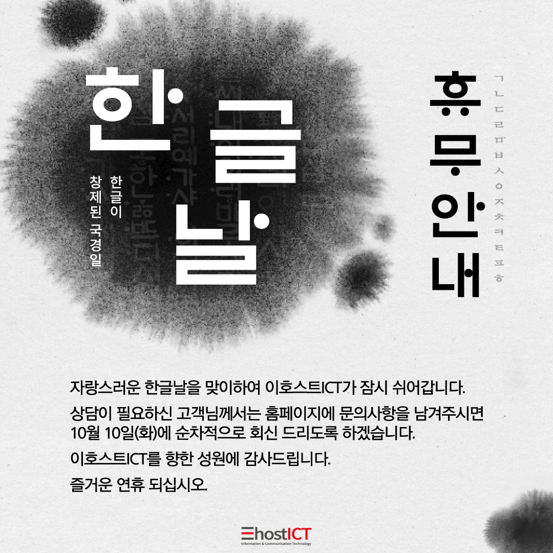 자랑스러운 한글날을 맞이하여 이호스트IDC가 잠시 쉬어갑니다.