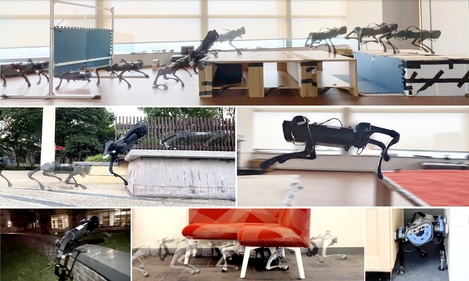 그런 다음, 연구팀은 실제 로봇개를 사용하여 광범위한 실험을 수행하여 로봇개의 기존 컴퓨팅 시스템, 시각 센서 및 전력 시스템만을 사용하여 까다로운 환경에서 새로운 장애물에 접근하는 방식을 입증했다.