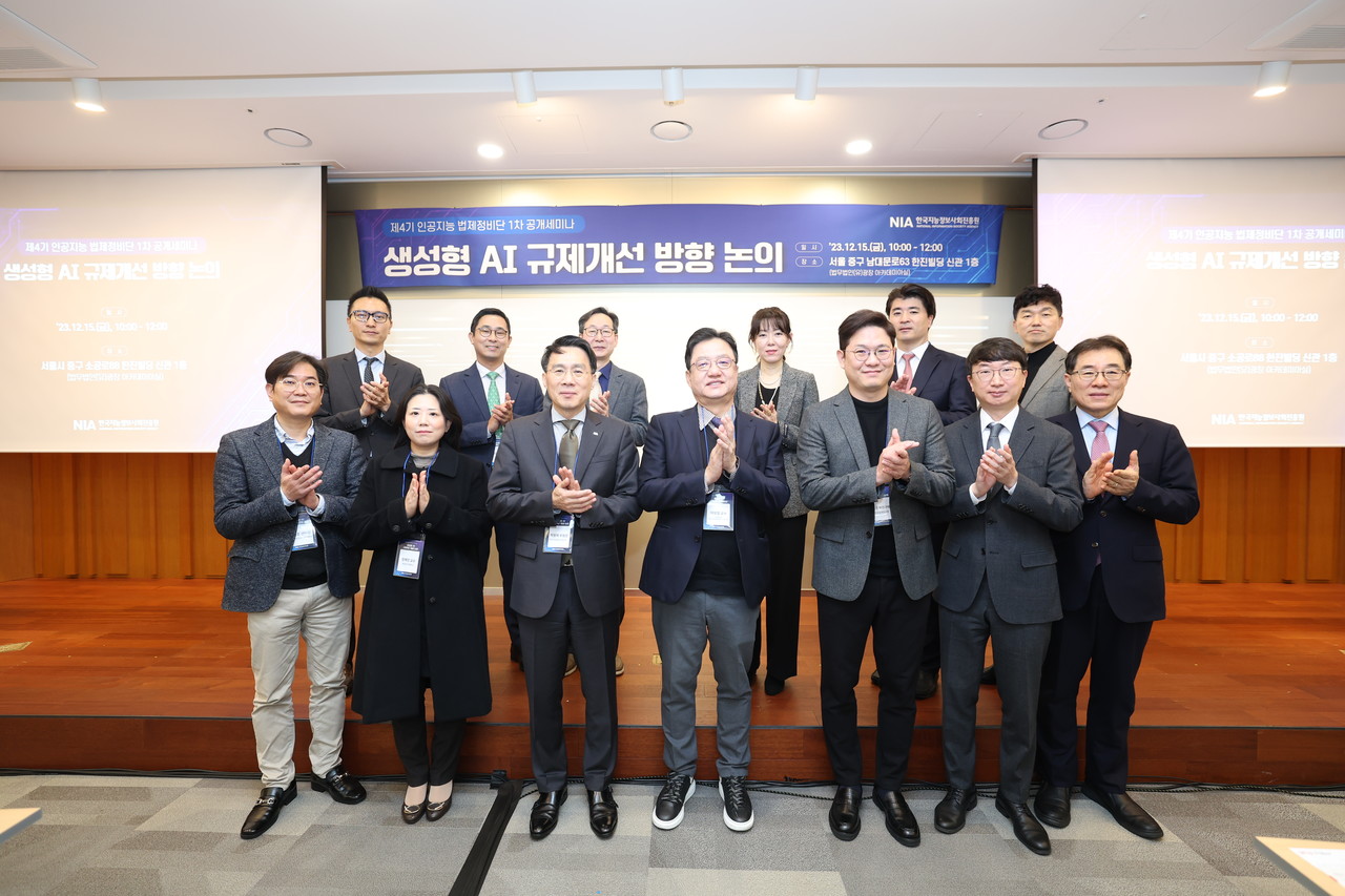 이러한 국내외 흐름 속에서 NIA는 AI 산업 진흥 및 신뢰 기반 확보를 위해 각 분야의 전문가와 함께 운영하는 ‘AI 법제정비단’을 통해 생성형 AI 확산에 따른 법제도적 이슈를 검토하고 공론화하고자 이번 세미나를 개최했다.