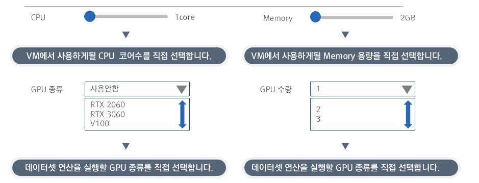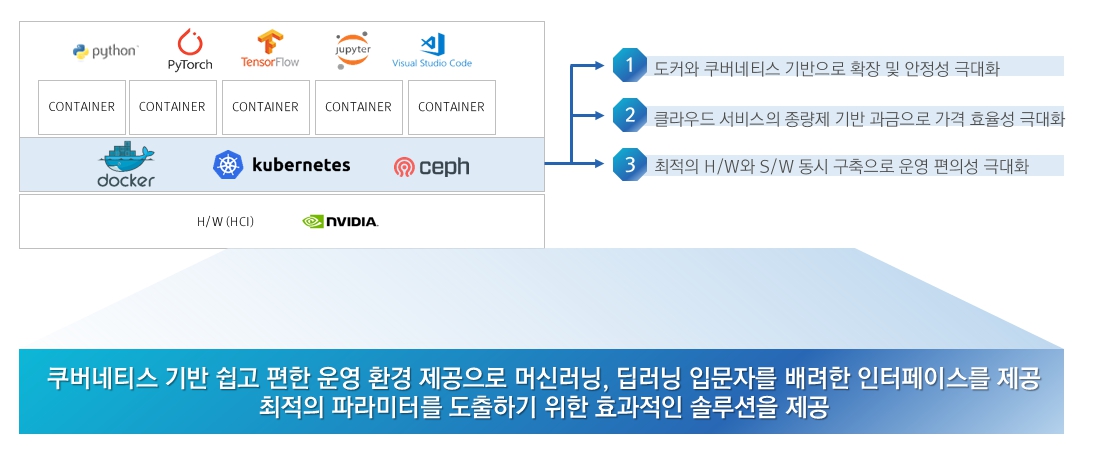 - 고가에 속하는 GPU 장비 구매를 하지 않고 사용한 만큼 정량제로 요금을 지불하는 GPU Cloud Service 입니다.
