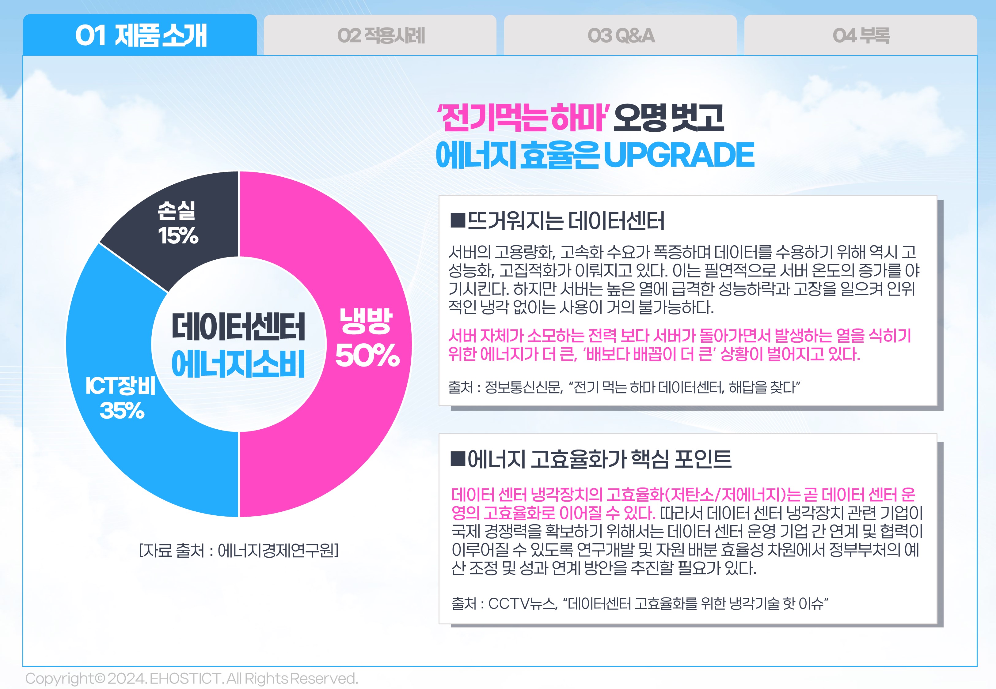 '전기먹는 하마'라는 오명을 벗고 4차 산업 시대의 스마트한 데이터센터 시설로 발돋움하기 위해서는 에너지 효율 문제를 우선적으로 해결해야 할 것인데요. 데이터센터 에너지절감솔루션 쿨세이버로 더욱 효율적인 IDC 냉각시스템을 마련할 수 있습니다.