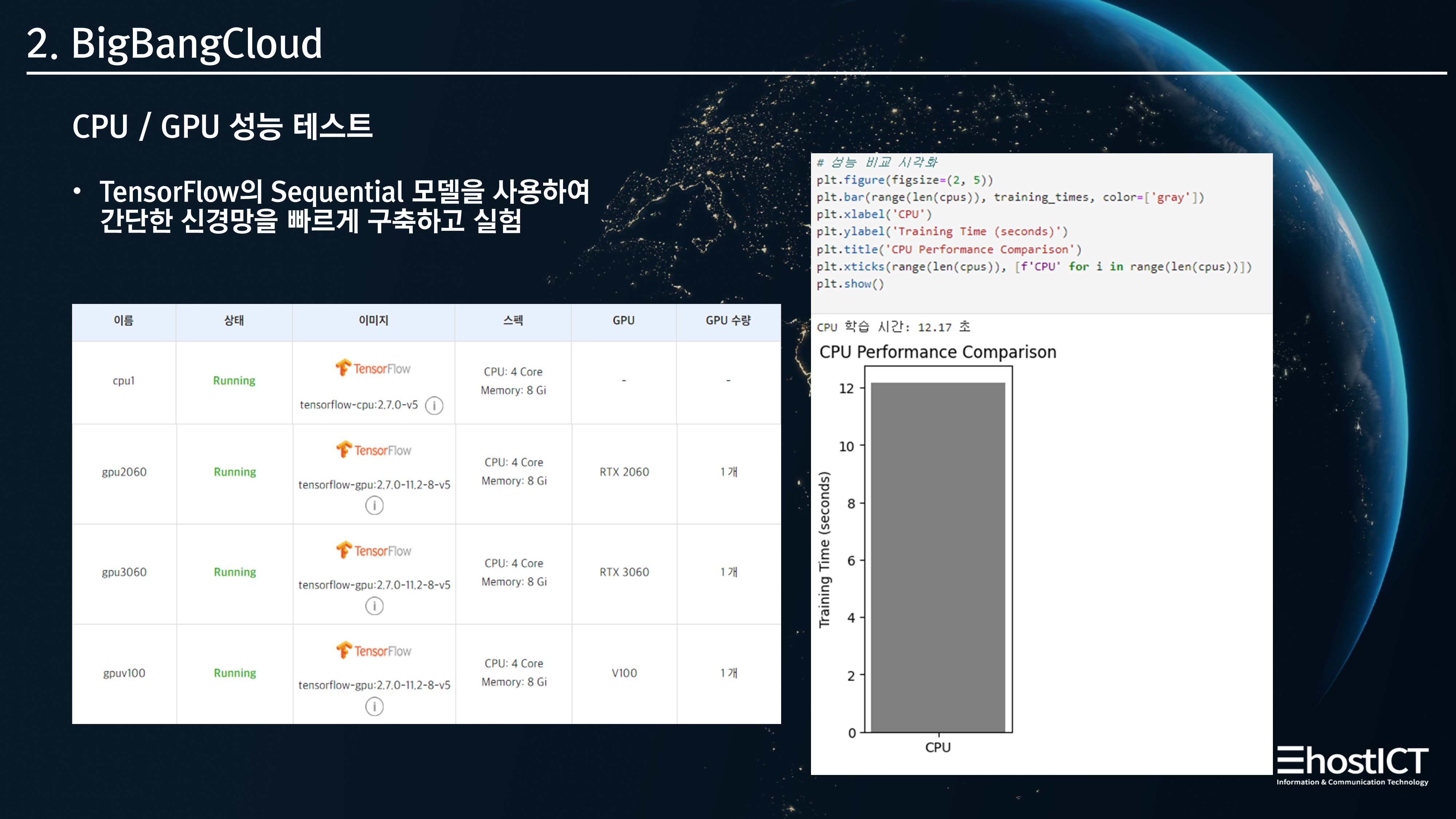 이어서 GPU 클라우드 플랫폼 중 하나인 빅뱅 클라우드의 소개와 빅뱅 클라우드에서 사용 가능한 GPU의 특징 및 성능 차이 테스트 결과에 대해 간단히 설명드리려고 합니다.