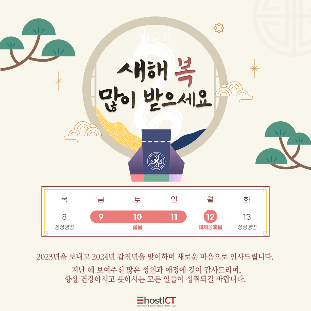 ■ 휴무 일정 : 2024.2.9(금)~2024.2.12(월)