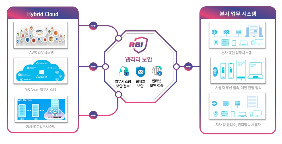 RBI는 제로트러스트 보안 아키텍처를 기반으로 구축되어, 모든 웹 트래픽을 실시간으로 격리하는 방식으로 작동한다. 이를 통해 악성 웹사이트, 다양한 형태의 사이버 공격, 악성 파일 등으로부터 기업 네트워크와 엔드포인트를 보호할 수 있다. RBI는 사용자가 웹 페이지를 안전하게 브라우징할 수 있도록 가상 환경에서 웹 콘텐츠를 실행하며, 모든 악성 코드를 격리시켜 실제 환경으로 전달되지 않도록 한다.