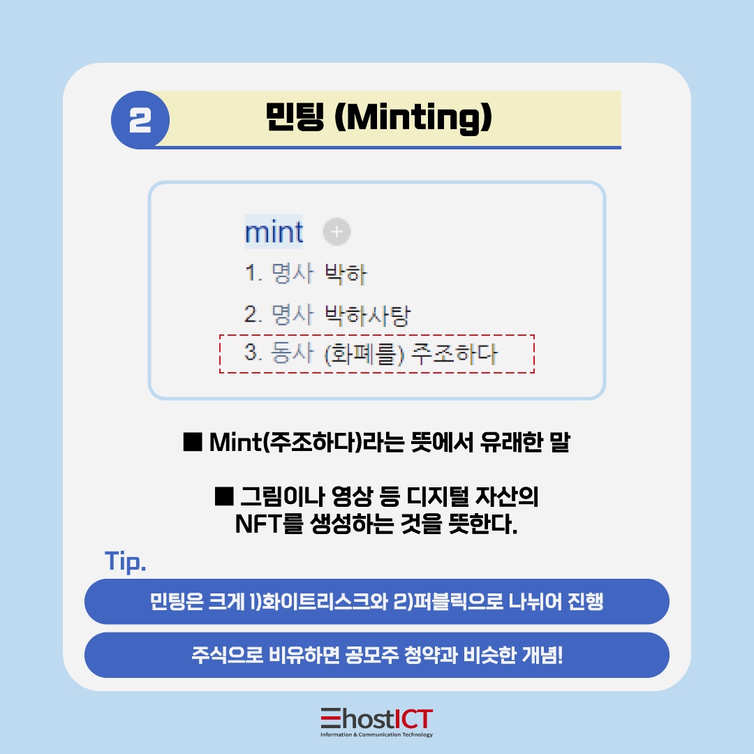 | [IT 카드뉴스] 가상세계 기술의 핵심! NFT 필수용어사전 part2. (0) | 2024.02.29 |