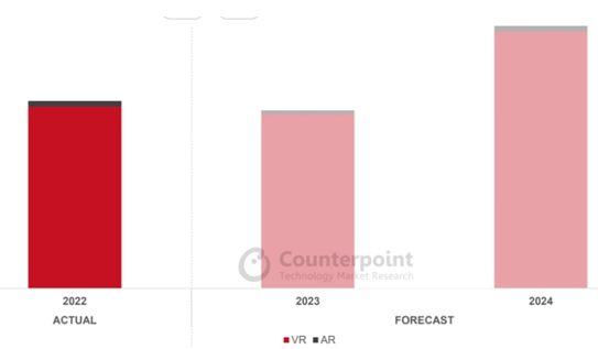 시장조사업체 카운터포인트리서치는 세계 XR 기기 출하량이 2022년 약 3000만대에서 2025년 1억500만대로 3배 넘게 증가할 것으로 전망했다.
