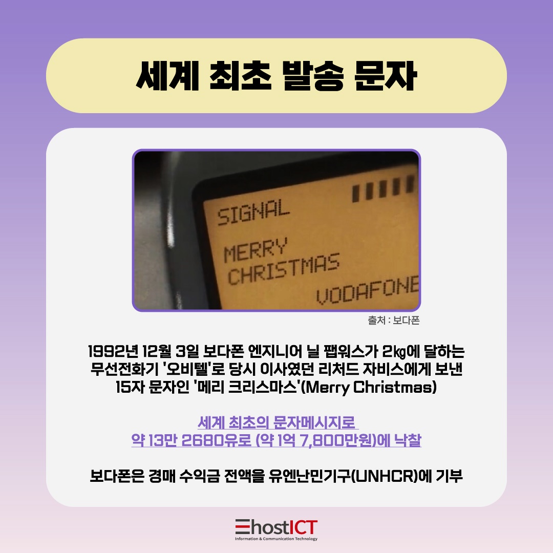 약 30년 전, 세계 최초로 보내진 휴대전화 문자메시지 '메리 크리스마스'가 NFT로 제작되었으며, 이는 약 13만 2,680유로(한화 약 1억 7,800만원)에 낙찰되어 화제를 모았습니다.
