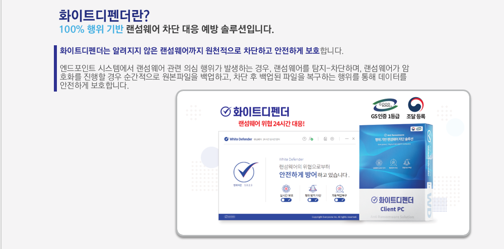 안티랜섬웨어 솔루션 "화이트 디펜더" 랜섬웨어 제거부터 복구까지 ONE-STOP