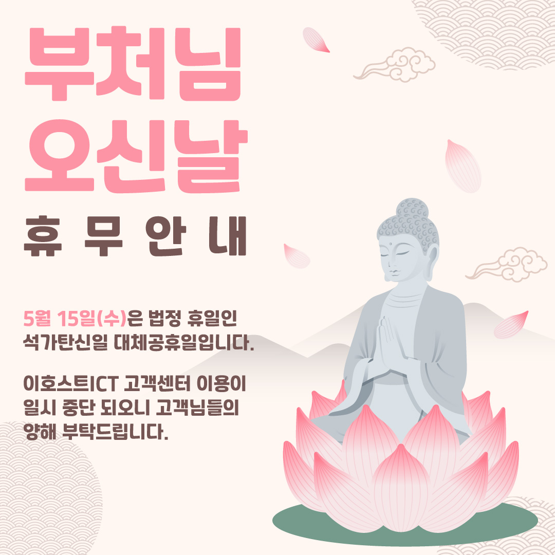 5월 15일(수)은 법정 휴일인 석가탄신일 대체공휴일로