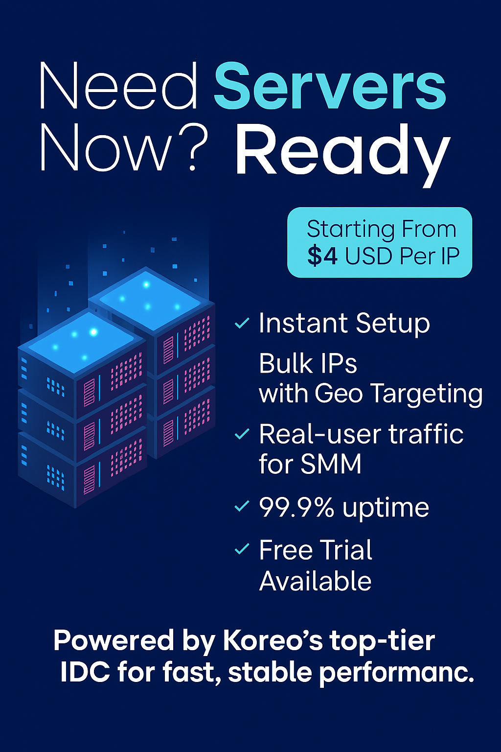 💡 Starting at only $4 USD per IP, you can get access to stable servers powered by Korea’s top-tier IDC, trusted by global businesses for fast and secure performance.